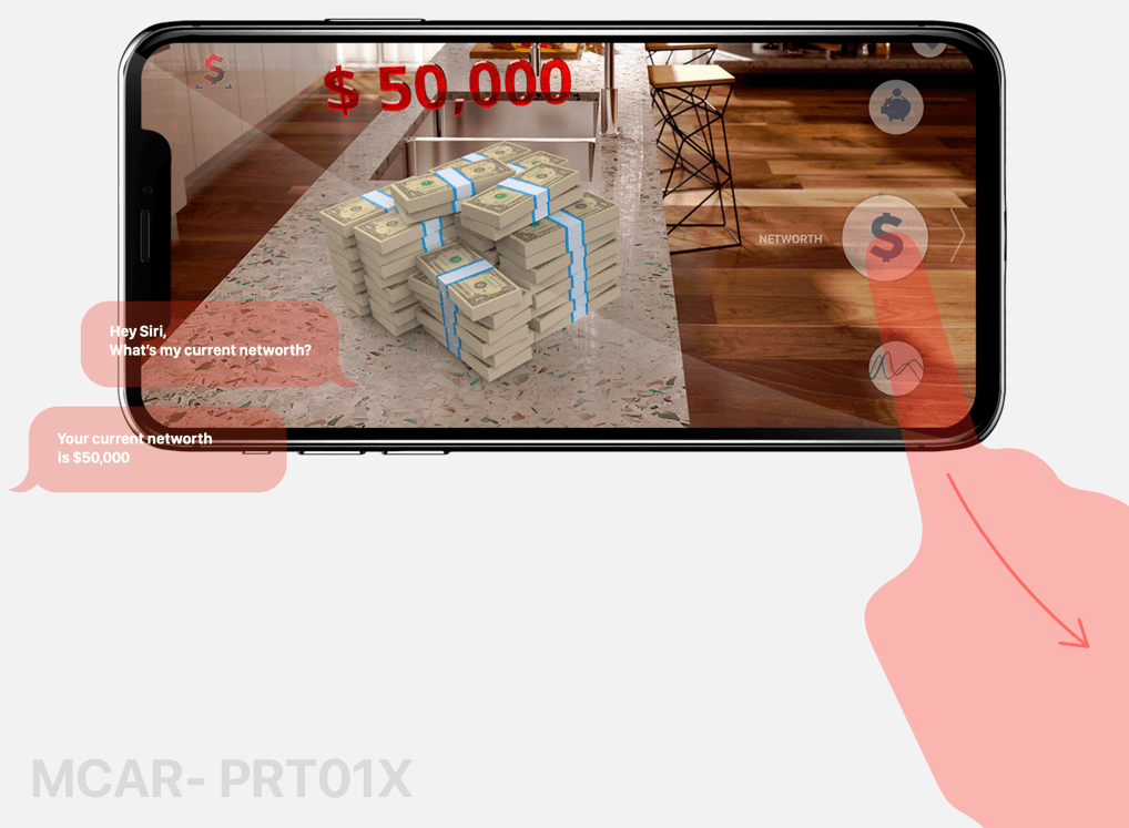 Exciting things like an AR app where you point the camera to a banknote and you get a real-time currency conversion of that banknote in a currency of your choosing which is perfect for when you are travelling the world. Another exciting AR app which will allow you to scan an ATM and display your bank details without the need of you to enter the card/pin into the ATM. Or you can just scan your credit card to see how much you have spent, deadline and the last couple transactions you made using that card. Or a potential AR viewfinder inside MoneyCoach as you can see in the image down below. Let's just say that we have been exploring...